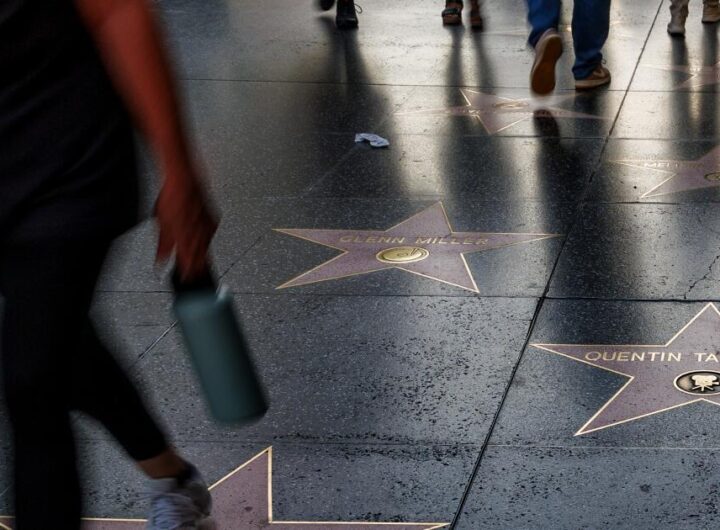 Nguồn ảnh:https://www.latimes.com/business/story/2025-09-29/with-less-tourism-in-la-international-visitors-proceed-with-caution Du khách đi bộ dọc theo Hollywood Boulevard trước Nhà hát Dolby ở Los Angeles....