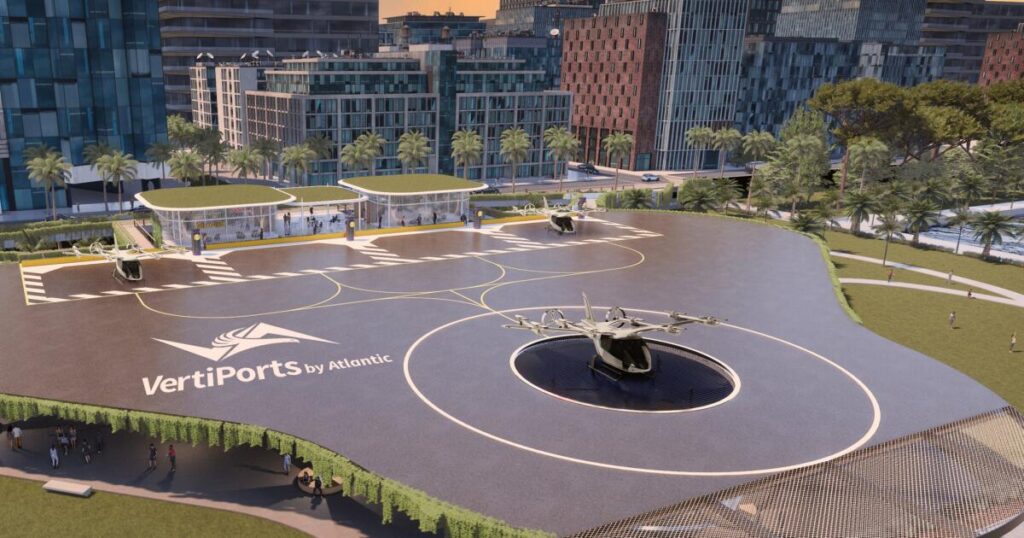Các vertiports, như được gọi, có thể được xây dựng trên đất trống bên cạnh một sân bay hoặc trường đại học, hoặc cũng có thể trên một bãi đậu xe hoặc một nóc của tòa nhà khác trong khu vực trung tâm thành phố, theo Kevin Cox, giám đốc điều hành của VertiPorts by Atlantic.