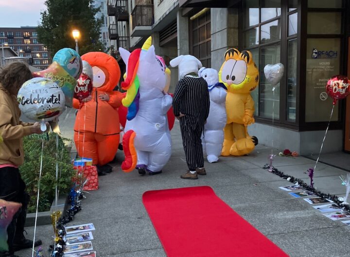 Nguồn ảnh:https://www.oregonlive.com/crime/2025/10/unicorn-bride-marries-kenny-from-south-park-at-portland-ice-protest.html Cô dâu, rực rỡ trong bộ trang phục kỳ lân, và chú rể, mặc trang...