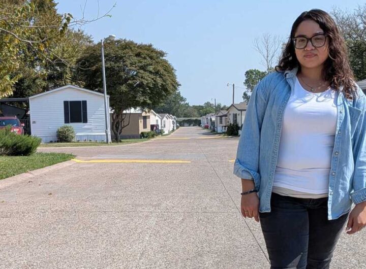 Nguồn ảnh:https://www.keranews.org/news/2025-10-15/dallas-kleberg-annexed-neighborhood-complaints-infrastructure David Carranza, chủ tịch Hiệp hội Khu phố Kleberg, lái xe gần trung tâm giải...